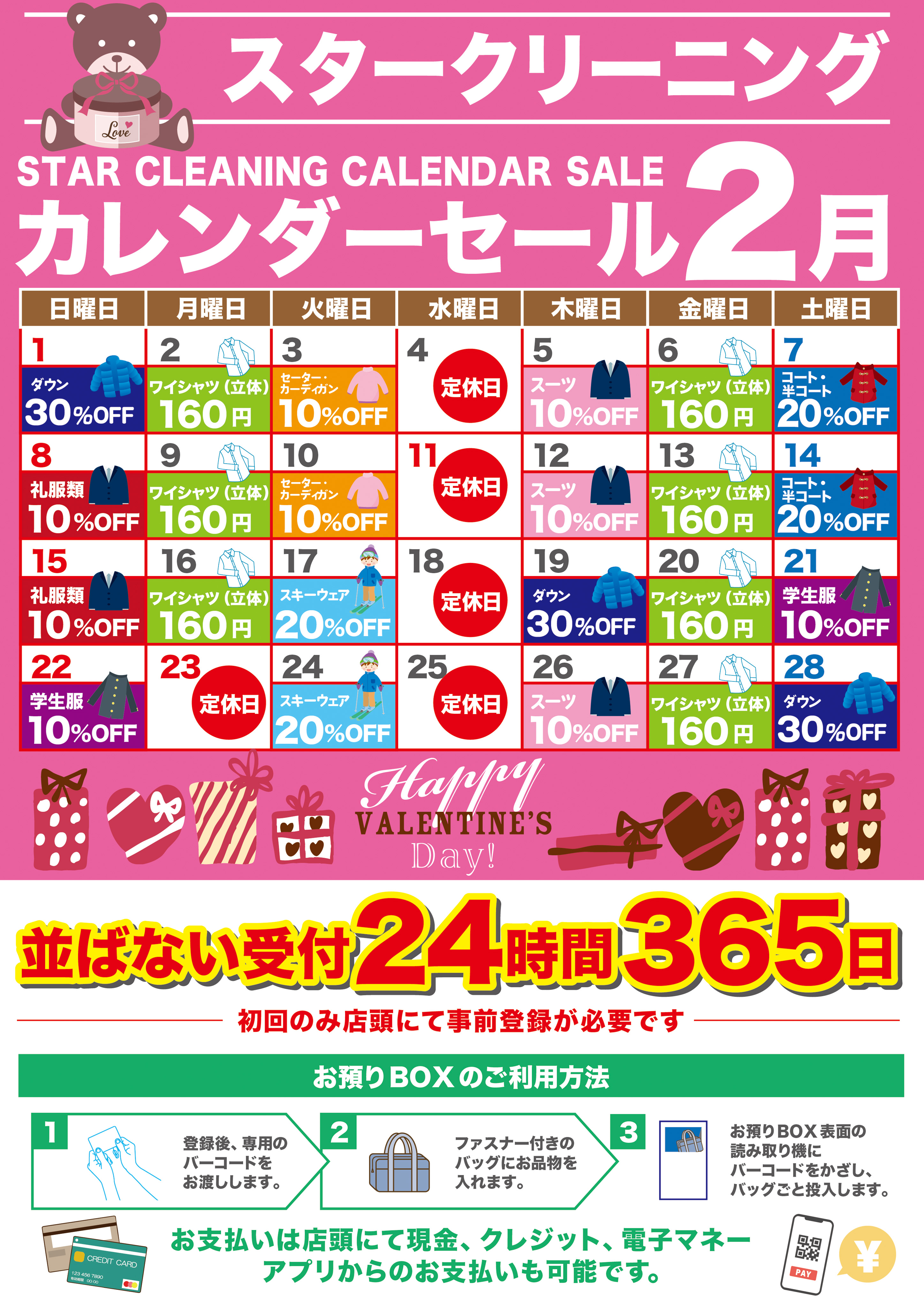 定休日のお知らせ(01月15日) いつもスタークリーニングをご利用下さりありがとうございます。 昨年11月より、水曜日と祝日が定休日となっておりますので お間違...read more |