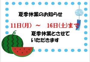 8月に入り当店でも6日間の夏休みを取らせていただきますので宜しくお願い致します🌻