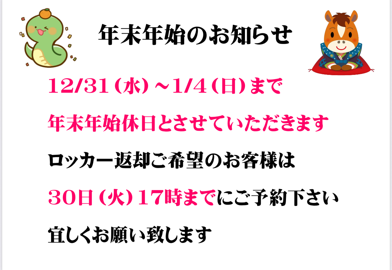 年末年始のお知らせです