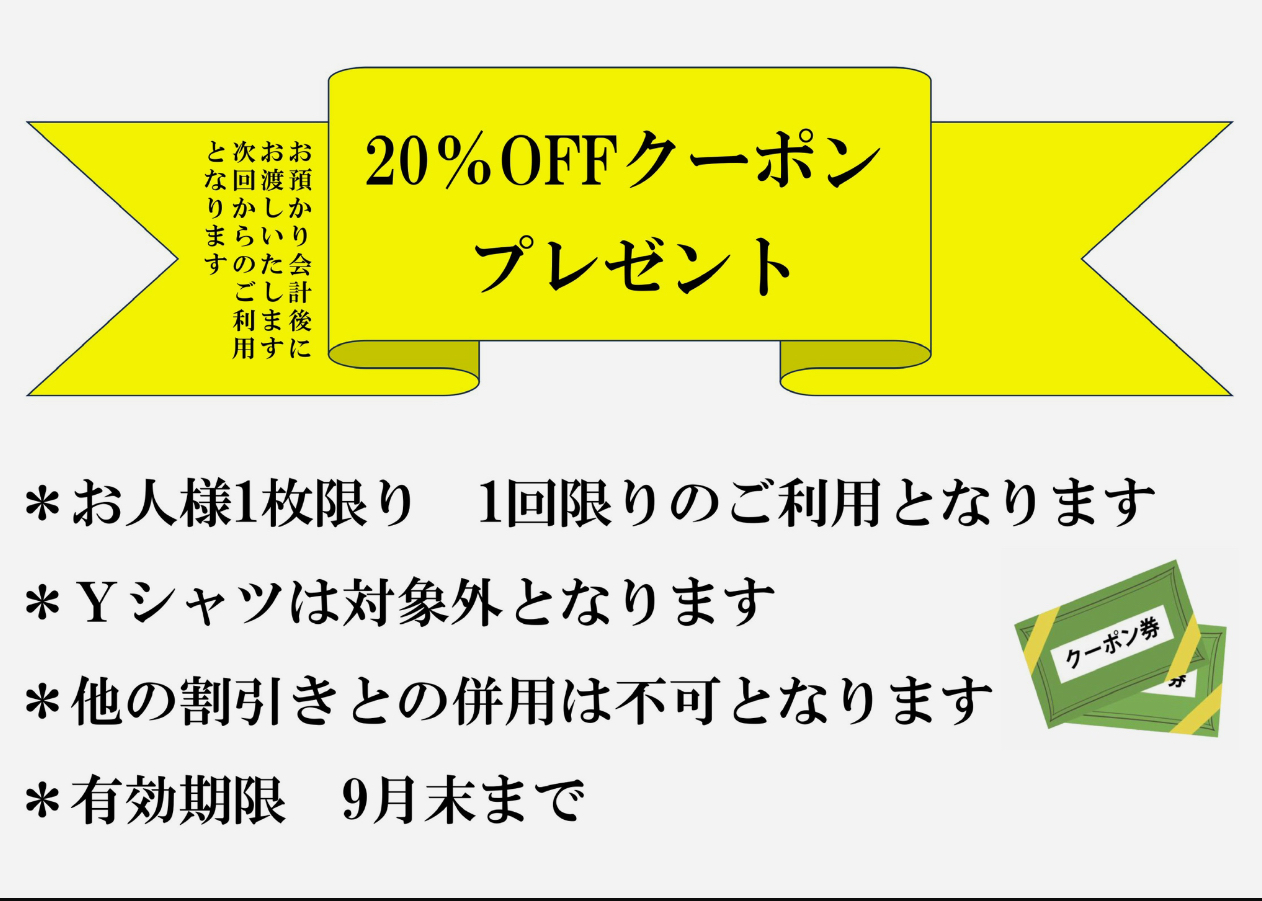 20%OFFクーポンご利用は明日まで2025-09-29(7:00 am) | カテゴリー:前川店