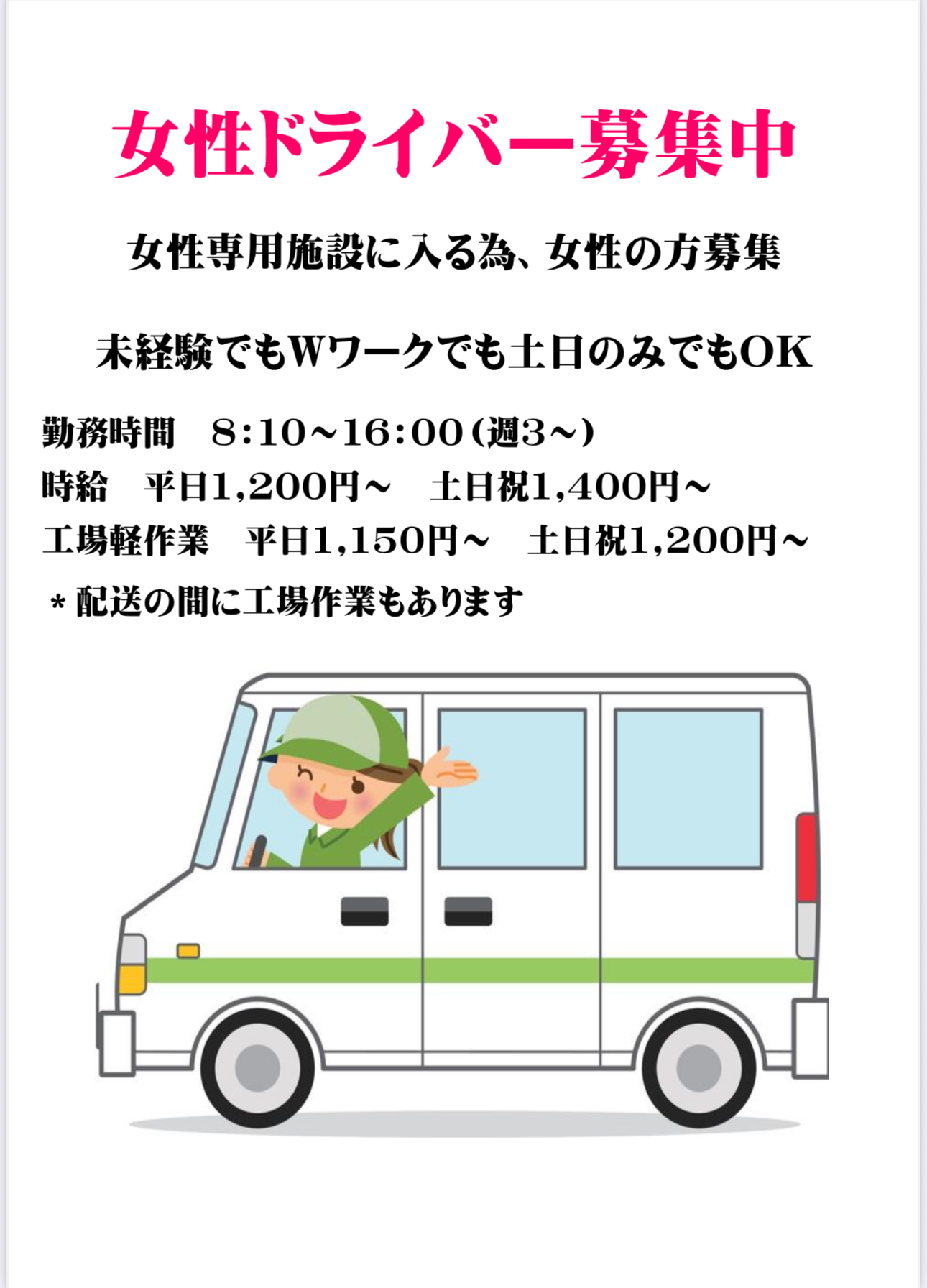 前川店をご利用いただきありがとうございます😊 前川店では配送スタッフを募集しております 女性限定の理由とし女性専用の施設に入る為女性限定とさせていただいております ご応募お待ちしております ...read more