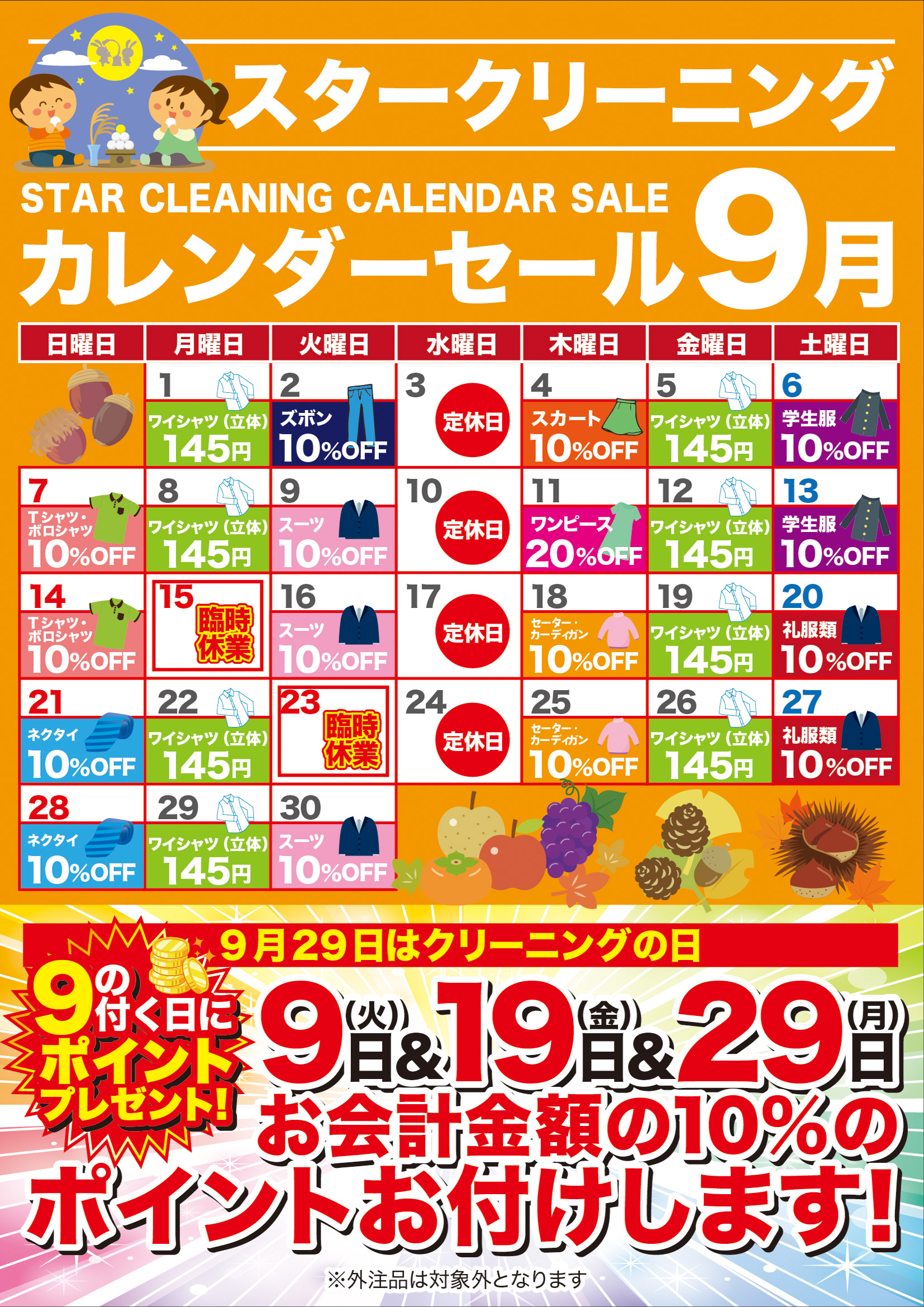 9月のカレンダーセール🎵2025-09-01(12:00 am) | カテゴリー:柳崎店